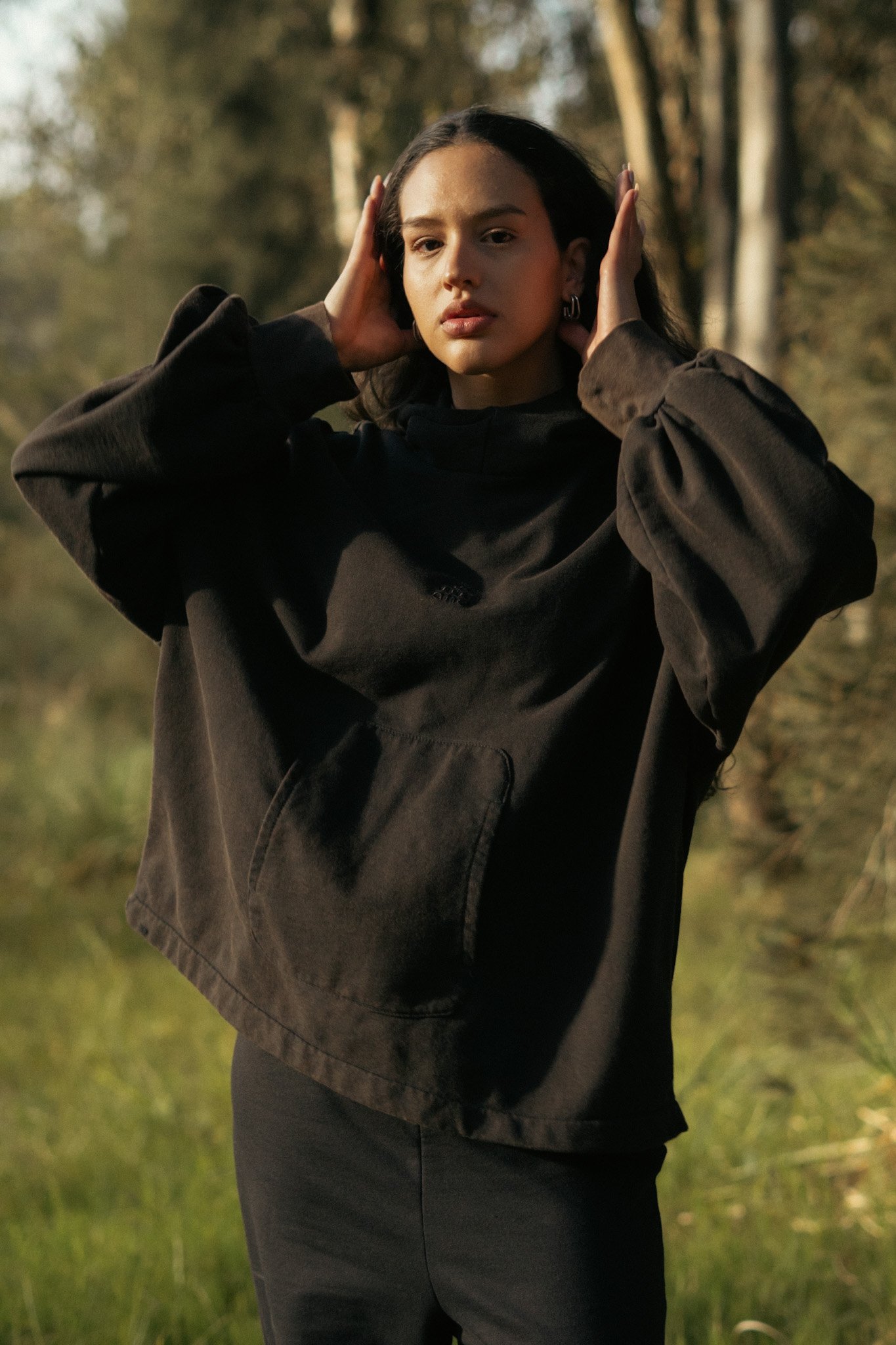Canguro bordado oversize confeccionado en algodón, con capucha amplia y cuello integrado. El ruedo ajustable con tancas permite personalizar la silueta, combinando comodidad y estilo urbano.